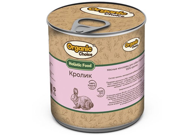 Organic Сhoice Влажный корм Консервы Органик Чойс для собак 100 % Кролик (цена за упаковку) 340г х 6шт