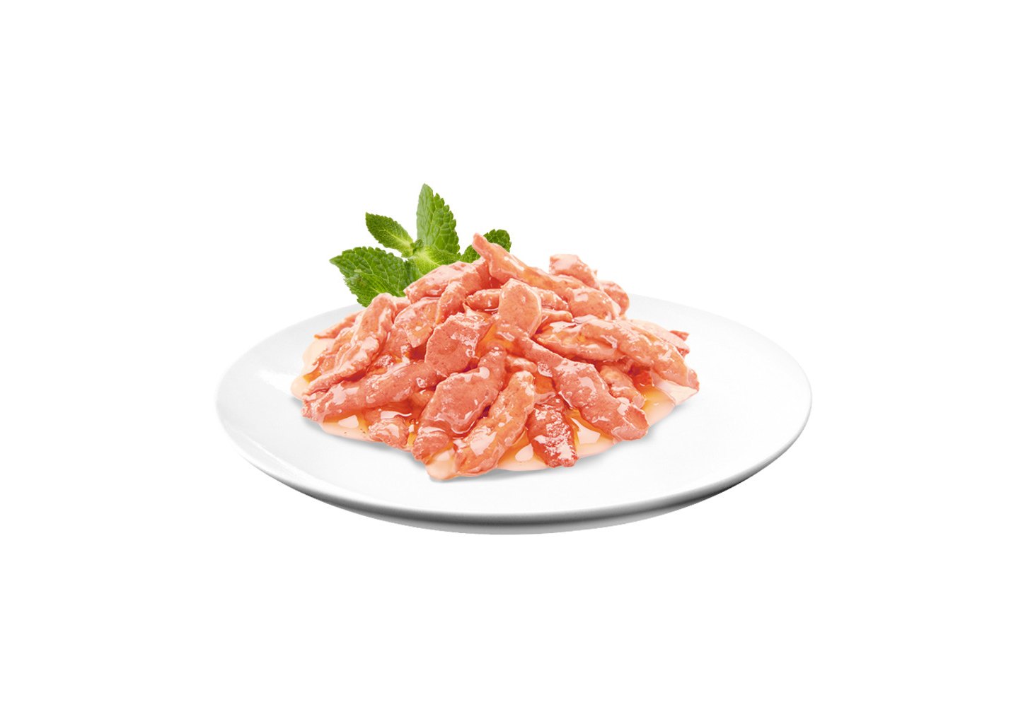 Эти сочные ломтики с лососем в фирменном соусе приготовлены специально, чтобы ваша любимая кошка насладилась неповторимым вкусом.