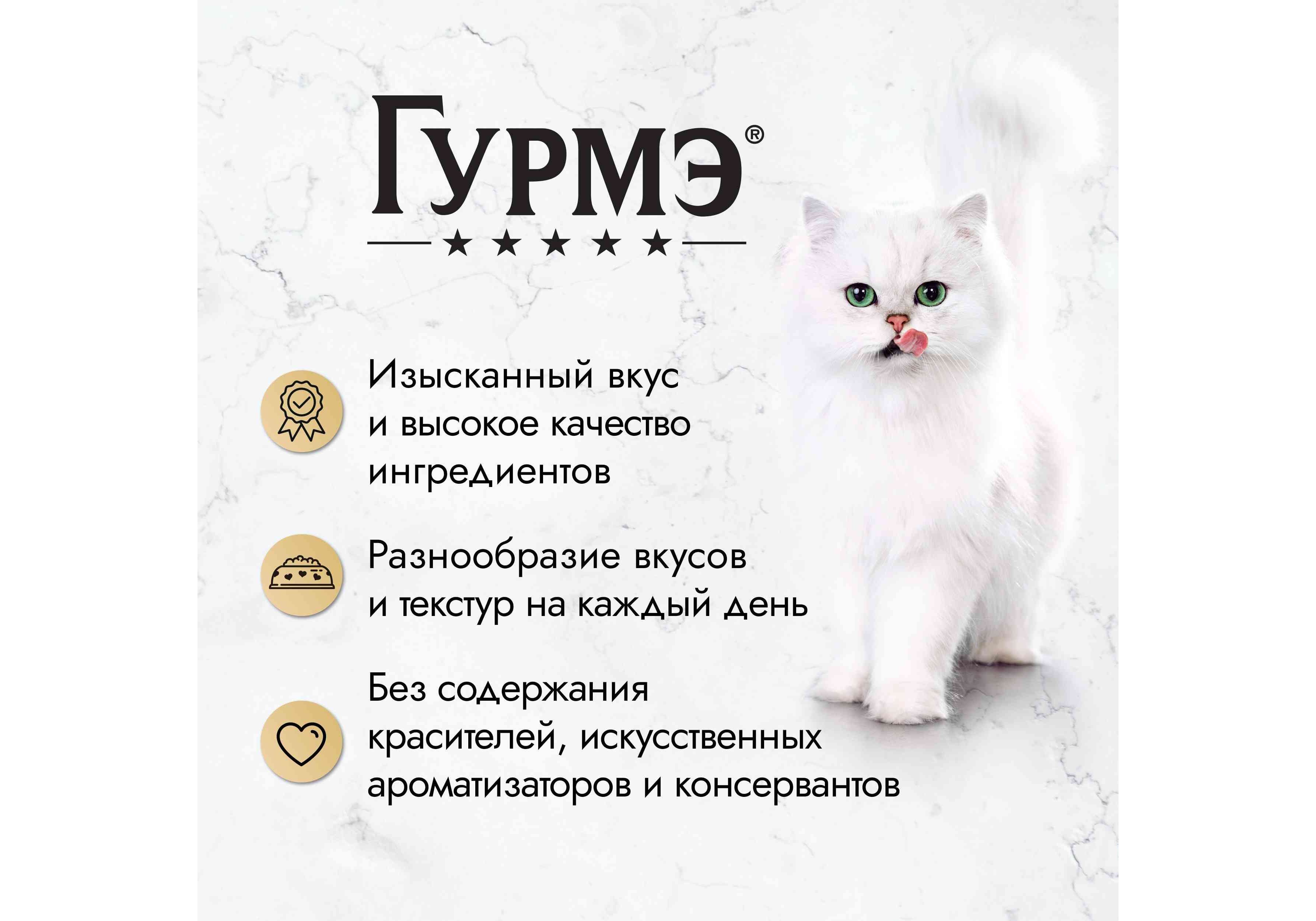 Корм для кошек ГУРМЭ® полнорационный, содержит все необходимые для здоровья микронутриенты.