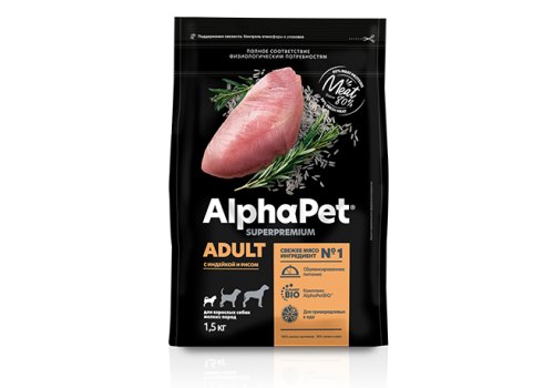 AlphaPet Superpremium Сухой корм АльфаПет для взрослых собак Мелких пород Индейка рис 1,5 кг