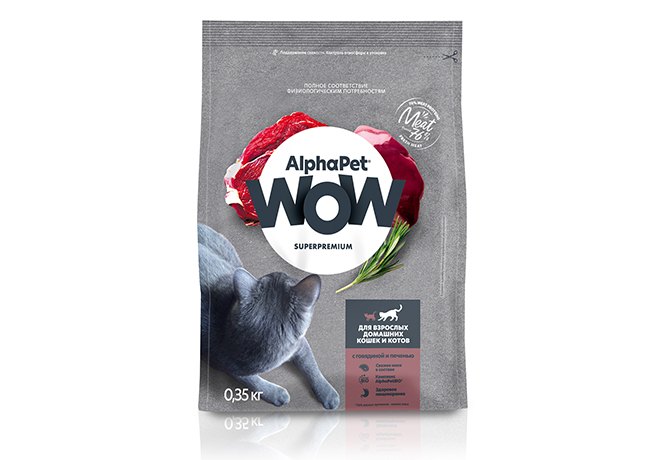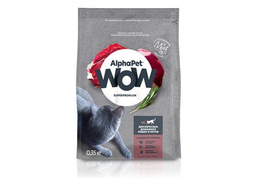 AlphaPet Wow Superpremium Сухой корм АльфаПет для Домашних кошек Говядина печень 350 г
