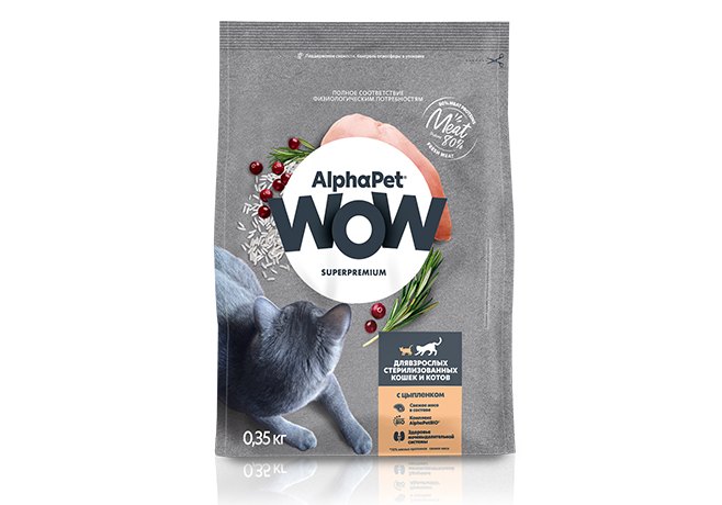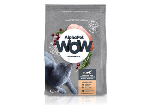 AlphaPet Wow Superpremium Сухой корм АльфаПет для Стерилизованных кошек Цыпленок 350 г