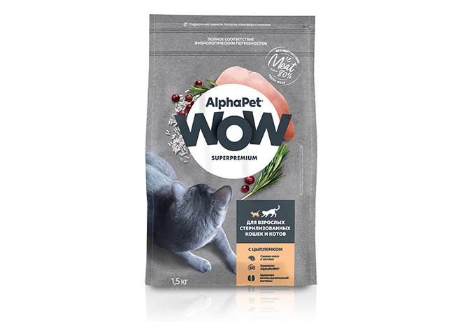 AlphaPet Wow Superpremium Сухой корм АльфаПет для Стерилизованных кошек Цыпленок 1,5 кг