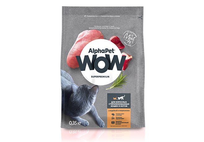 AlphaPet Wow Superpremium Сухой корм АльфаПет для Стерилизованных кошек Индейка потрошки 350 г