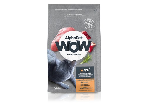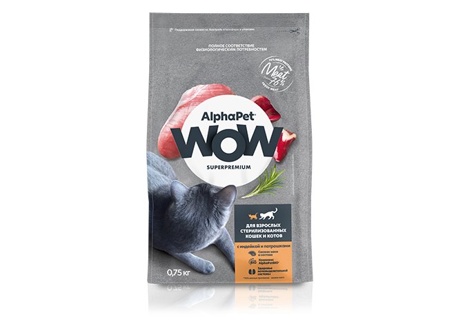 AlphaPet Wow Superpremium Сухой корм АльфаПет для Стерилизованных кошек Индейка потрошки 750 г