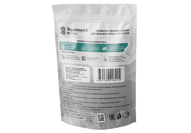 Нативное лакомство, созданное по технологии freeze-drying (сублимационная сушка). Все ингредиенты для лакомств ТерриториЯ™ поступают на производство в свежем виде. Там для сохранения своих полезных свойств они проходят сверхбыстрое замораживание. Затем в вакуумной камере происходит процесс сублимации, в результате чего замёрзшая влага в ингредиентах испаряется без перехода в жидкое состояние. Это значит, что удаляется только вода, а лакомство сохраняет все свои полезные свойства.