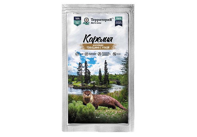 Территория Карелия Влажный корм Паучи для кошек Говядина с уткой (цена за упаковку) 85г х 30шт