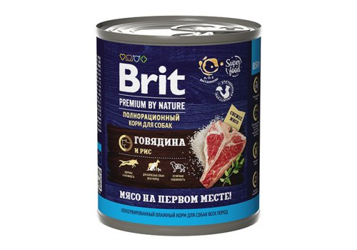 Brit Premium by Nature Консервы Брит для собак всех пород Говядина и рис (цена за упаковку) Новинка 850г x 6шт