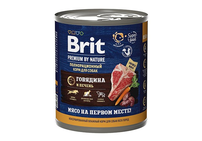 Brit Premium by Nature Консервы Брит для собак всех пород Говядина и печень (цена за упаковку) Новинка 850г x 6шт