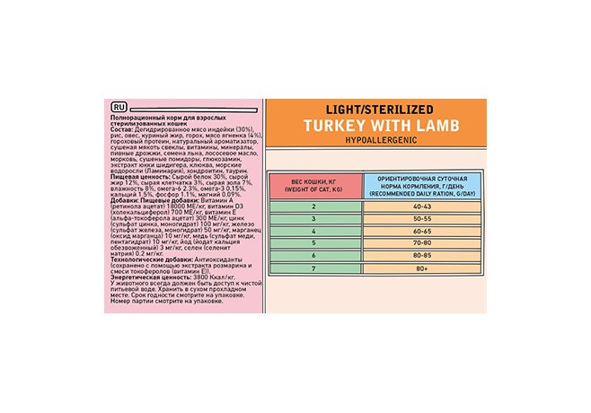 Zillii Light Sterilized Turkey with Lamb Сухой корм Зилли для Стерилизованных и кошек с Избыточным весом Индейка с Ягненком 400 г