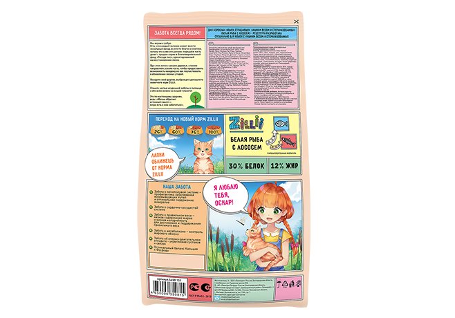 Zillii Light Sterilized White Fish with Salmon Сухой корм Зилли для Стерилизованных и кошек с Избыточным весом Белая рыба с Лососем 2 кг