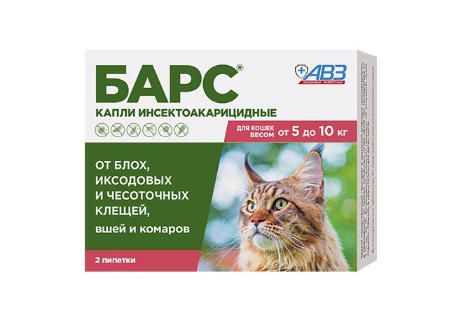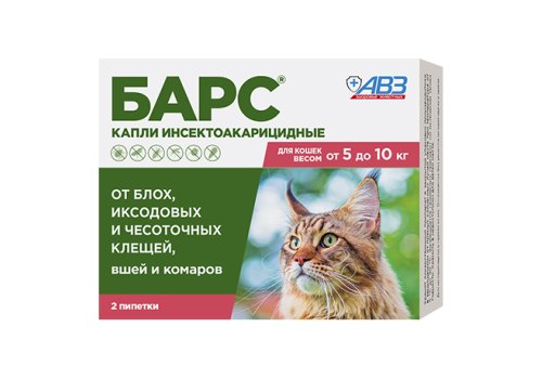 АгроВетЗащита Барс Капли от блох и клещей для кошек весом от 5 до 10 кг 2 х 0,5 мл