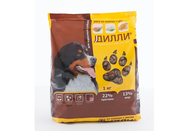 Дилли Сухой корм для взрослых собак Рагу из Курицы с рисом 1 кг