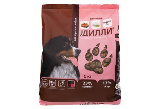 Дилли Сухой корм для взрослых собак с Рыбой и рисом 1 кг