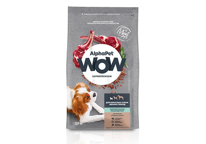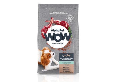 AlphaPet Wow Superpremium Sensitive Сухой корм АльфаПет для собак Мелких пород с Чувствительным пищеварением Ягненок бурый рис 900 г