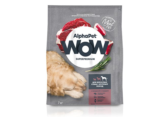 AlphaPet Wow Superpremium Сухой корм АльфаПет для взрослых собак Крупных пород Говядина сердце 7 кг