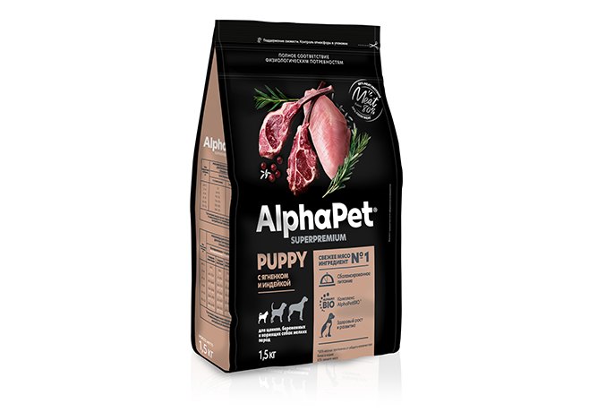 AlphaPet Puppy Superpremium Сухой корм АльфаПет для Щенков, беременных и кормящих собак Мелких пород Ягненок индейка 1,5 кг