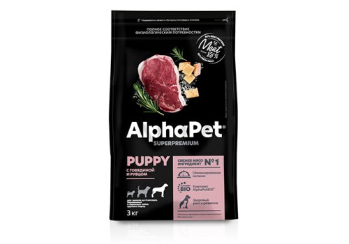 AlphaPet Puppy Superpremium Сухой корм АльфаПет для Щенков, беременных и кормящих собак Крупных пород до 6 месяцев Говядина рубец 1,5 кг