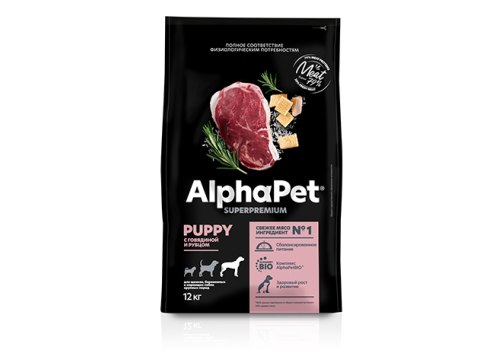 AlphaPet Puppy Superpremium Сухой корм АльфаПет для Щенков, беременных и кормящих собак Крупных пород до 6 месяцев Говядина рубец 12 кг