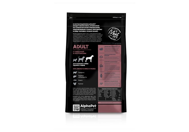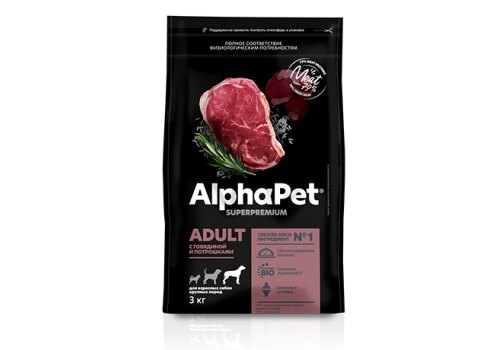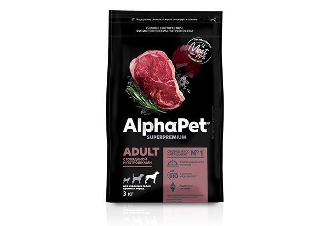 AlphaPet Superpremium Сухой корм АльфаПет для взрослых собак Крупных пород Говядина потрошки 3 кг