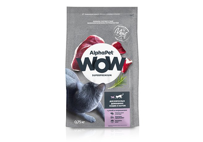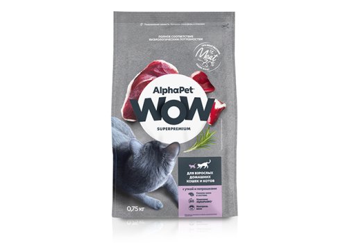 AlphaPet Wow Superpremium Сухой корм АльфаПет для Домашних кошек Утка потрошки 750г