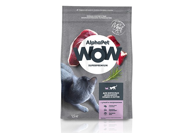 AlphaPet Wow Superpremium Сухой корм АльфаПет для Домашних кошек Утка потрошки 1,5 кг