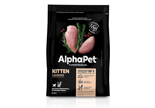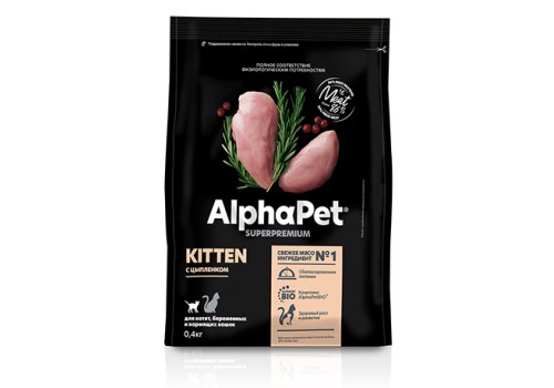 AlphaPet Kitten Superpremium Сухой корм АльфаПет для Котят, беременных и кормящих кошек Цыпленок 400 г