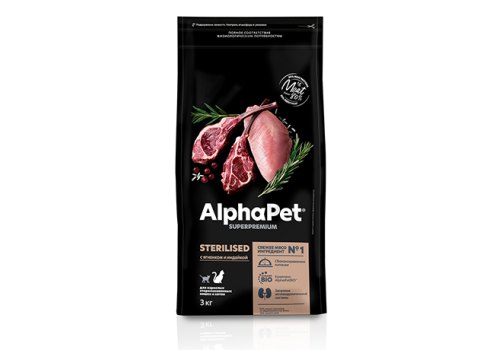 AlphaPet Superpremium Sterilised Сухой корм АльфаПет для Стерилизованных кошек Ягненок индейка 3 кг