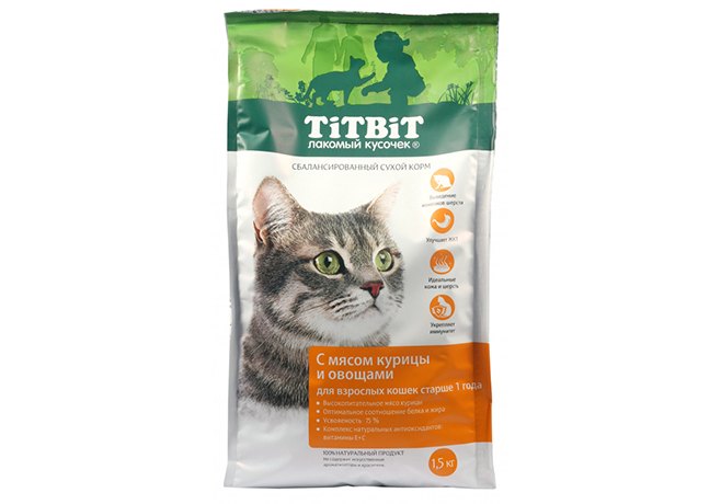 Titbit Сухой корм Титбит для взрослых кошек с мясом Курицы и овощами 1,5 кг
