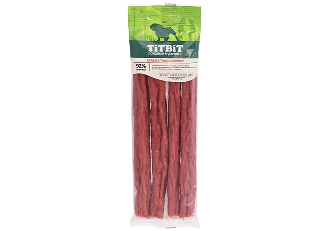 Titbit Золотая коллекция Лакомство Титбит для собак Колбаса Традиционная 80 г