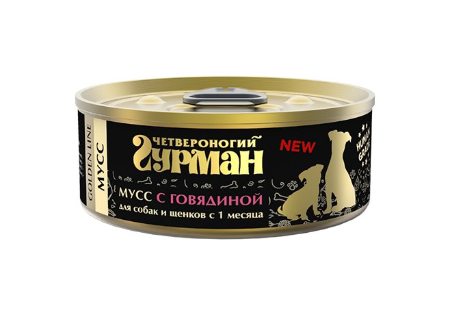 Четвероногий Гурман Golden Line Консервы Золотая линия для собак и Щенков Мусс с Говядиной (цена за упаковку) 100г х 24шт