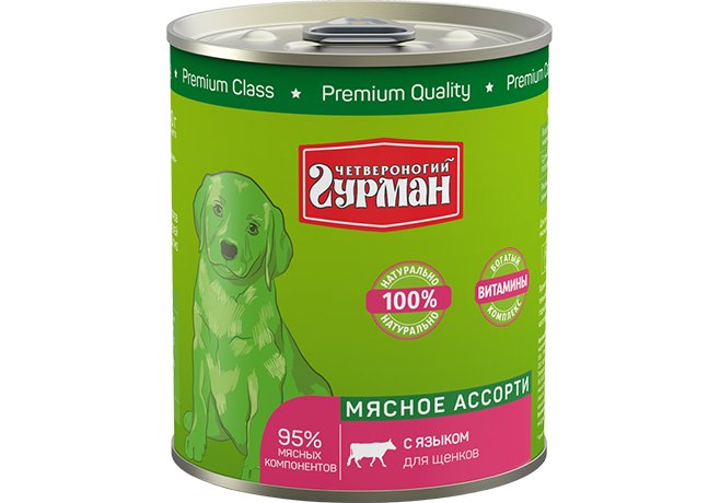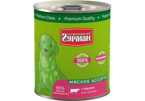 Четвероногий Гурман Мясное ассорти Консервы для Щенков с Языком (цена за упаковку) 340г х 12шт
