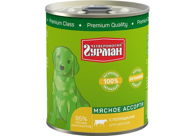 Четвероногий Гурман Мясное ассорти Консервы для Щенков с Потрошками (цена за упаковку) 340г х 12шт