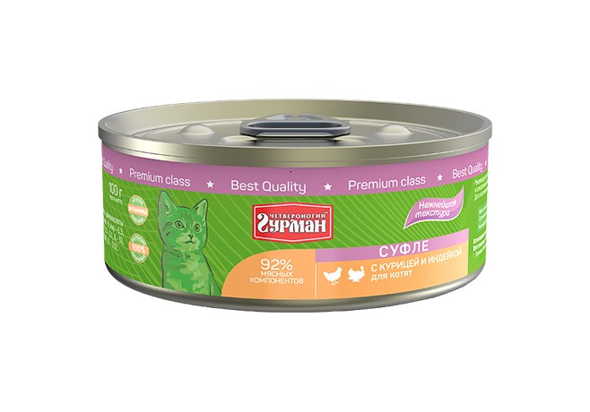 Четвероногий Гурман Консервы для Котят Суфле с Курицей и индейкой (цена за упаковку) 100г х 24шт