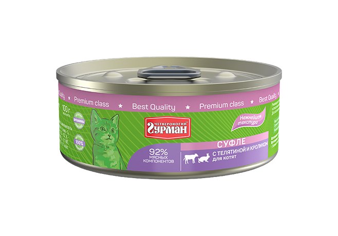 Четвероногий Гурман Консервы для Котят Суфле с Телятиной и кроликом (цена за упаковку) 100г х 24шт
