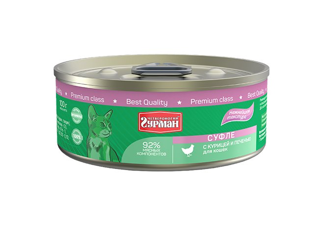 Четвероногий Гурман Консервы для кошек Суфле с Курицей и печенью (цена за упаковку) 100г х 24шт