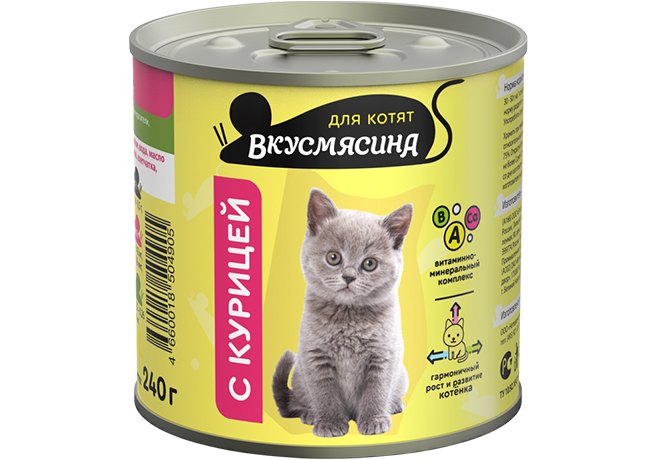 Вкусмясина Влажный корм Консервы для Котят с Курицей (цена за упаковку) 240г х 6шт