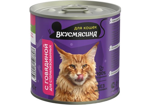 Вкусмясина Влажный корм Консервы для Стерилизованных кошек с Говядиной (цена за упаковку) 240г х 6шт
