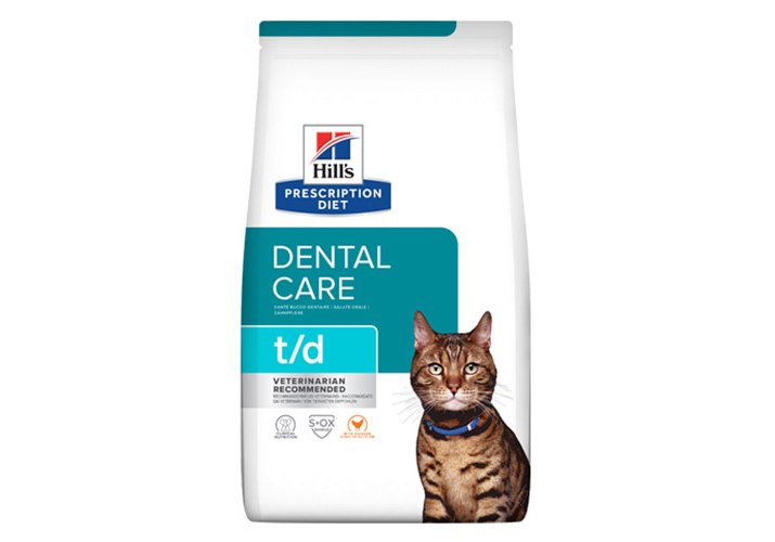 Prescription Die Feline t/d помогает поддерживать гигиену полости рта.