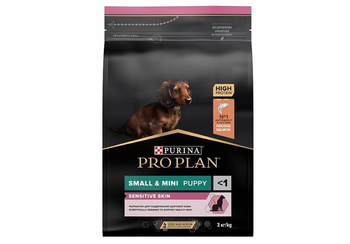 Изучая потребности щенков на протяжении многих лет, команда квалифицированных ветеринарных специалистов и диетологов PURINA разработала сухой корм PRO PLAN® Sensitive skin, ежедневный рацион для щенков мелких и карликовых пород с высоким содержанием лосося. Этот полнорационный корм полностью сбалансирован по составу и помогает поддерживать здоровье чувствительной кожи.