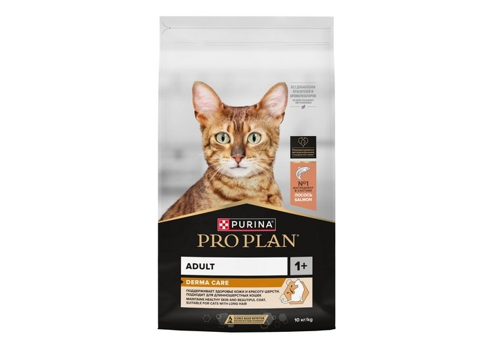 PRO PLAN DERMA CARE Сухой корм ПРО ПЛАН для взрослых кошек для здоровья кожи и красоты шерсти с лососем 10 кг