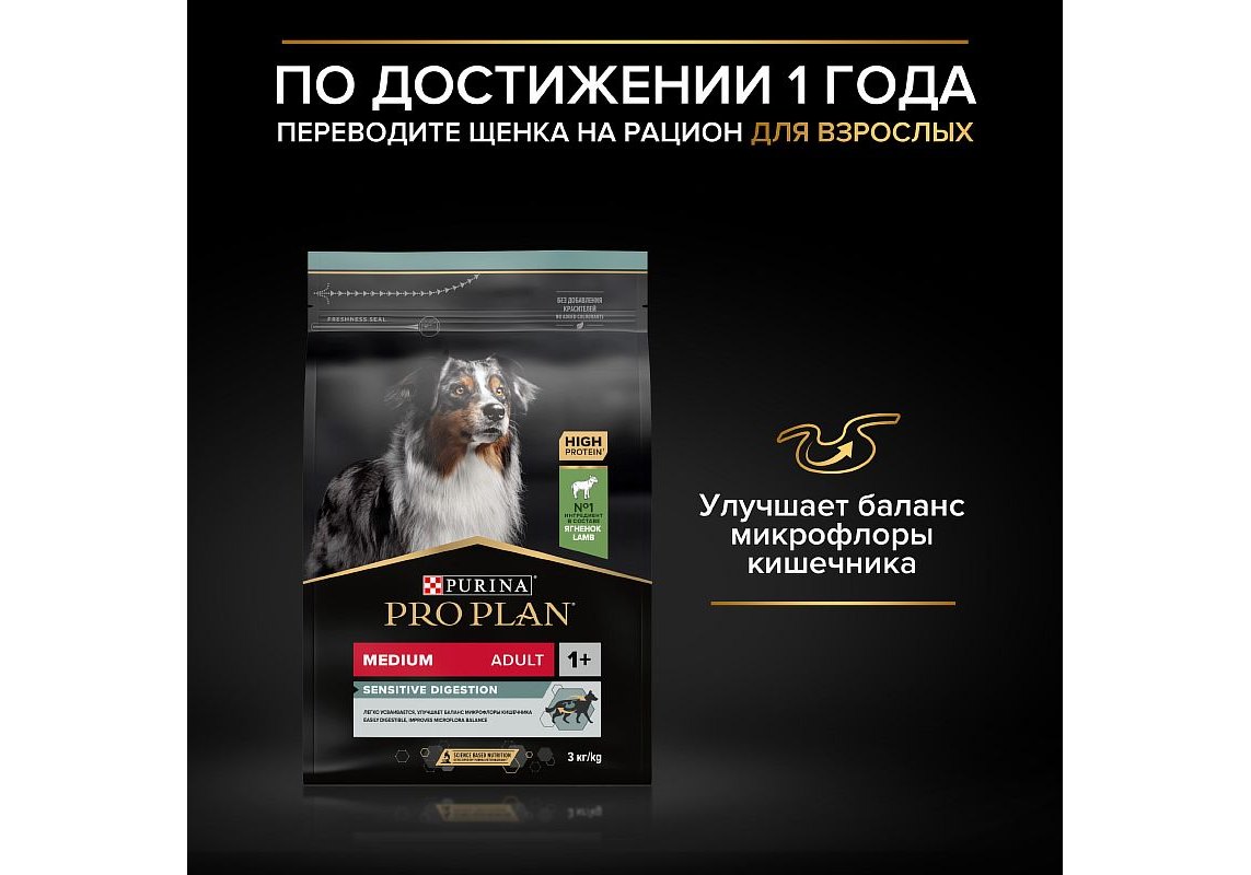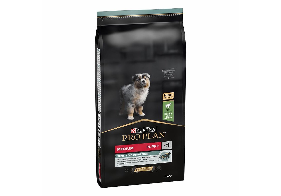 Изучая потребности щенков на протяжении многих лет, команда квалифицированных ветеринарных специалистов и диетологов PURINA разработала сухой корм PRO PLAN® Sensitive digestion (для чувствительного пищеварения) — ежедневный рацион с высоким содержанием ягненка для щенков средних пород. Этот полнорационный корм сбалансирован по составу и помогает поддержать здоровое пищеварение.