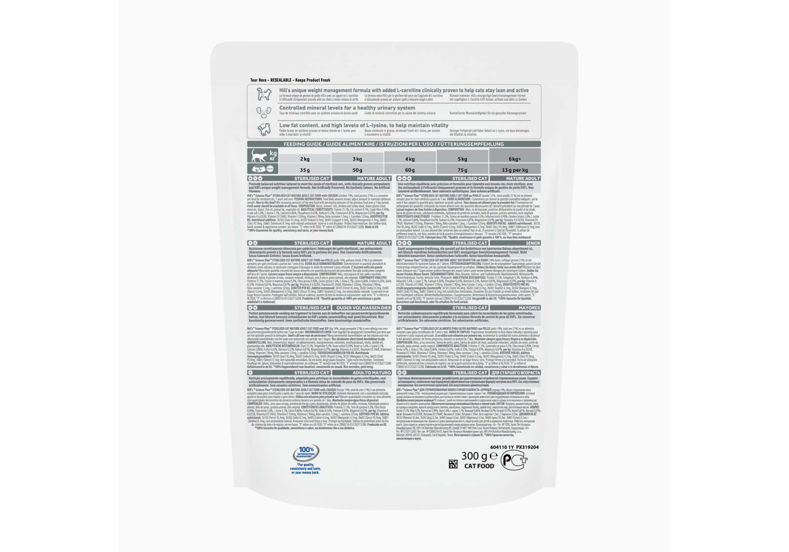 Поддерживает здоровый вес и здоровье почек у пожилых стерилизованных кошек.