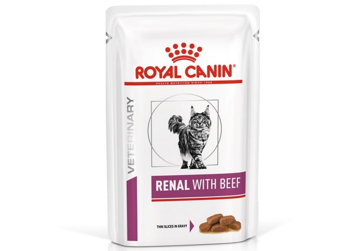 Влажный корм ROYAL CANIN® RENAL WITH BEEF (РЕНАЛ С ГОВЯДИНОЙ), мелкие кусочки в соусе - полнорационный диетический корм для взрослых кошек для поддержания функции почек при хронической болезни почек. Пониженное содержание фосфора и умеренное количество белка помогают поддерживать функции почек. Специально разработанный ароматический профиль помогает удовлетворить особые вкусовые предпочтения кошки.