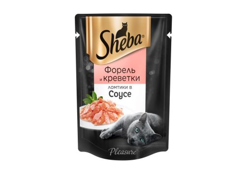 Sheba Pleasure Ломтики с форелью и креветками в соусе приготовлены так, чтобы подарить вашей кошке особенное удовольствие. Ей обязательно понравятся нежные мясные ломтики, а насыщенный ароматный соус раскроет и подчеркнет изысканное сочетание двух видов мяса. Известно, что кошки – взыскательные натуры, для себя они выбирают только самое лучшее. Им важно, чтобы еда была не только вкусной, но и разнообразной, поэтому Sheba – это лучший способ выразить любовь к кошке, порадовав ее новыми оттенками вкуса и соблазнительными сочетаниями.