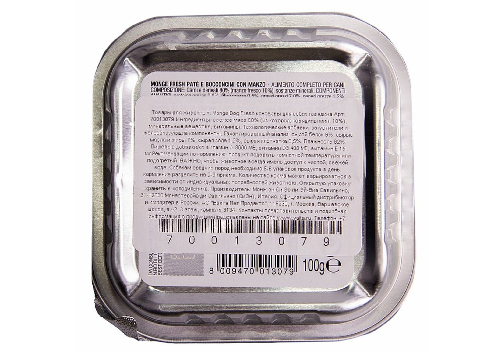 Monge Dog Fresh Beef Влажный корм Консервы Монж Фреш для взрослых собак Говядина (цена за упаковку) 100г x 32шт