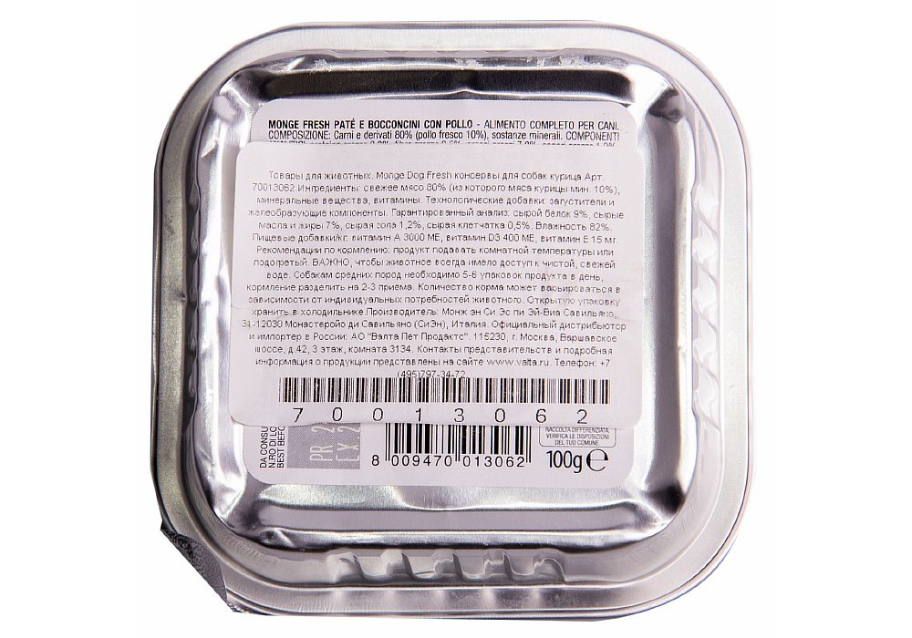 Monge Dog Fresh Chicken Влажный корм Консервы Монж Фреш для взрослых собак Курица (цена за упаковку) 100г x 32шт