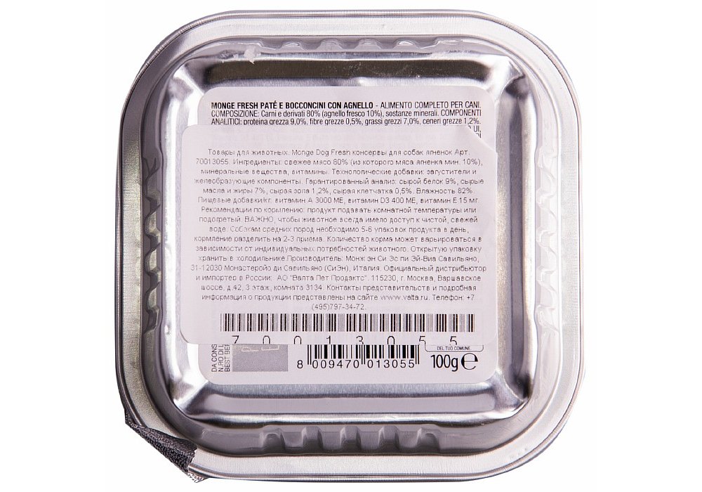 Monge Dog Fresh Lamb Влажный корм Консервы Монж Фреш для взрослых собак Ягненок (цена за упаковку) 100г x 32шт