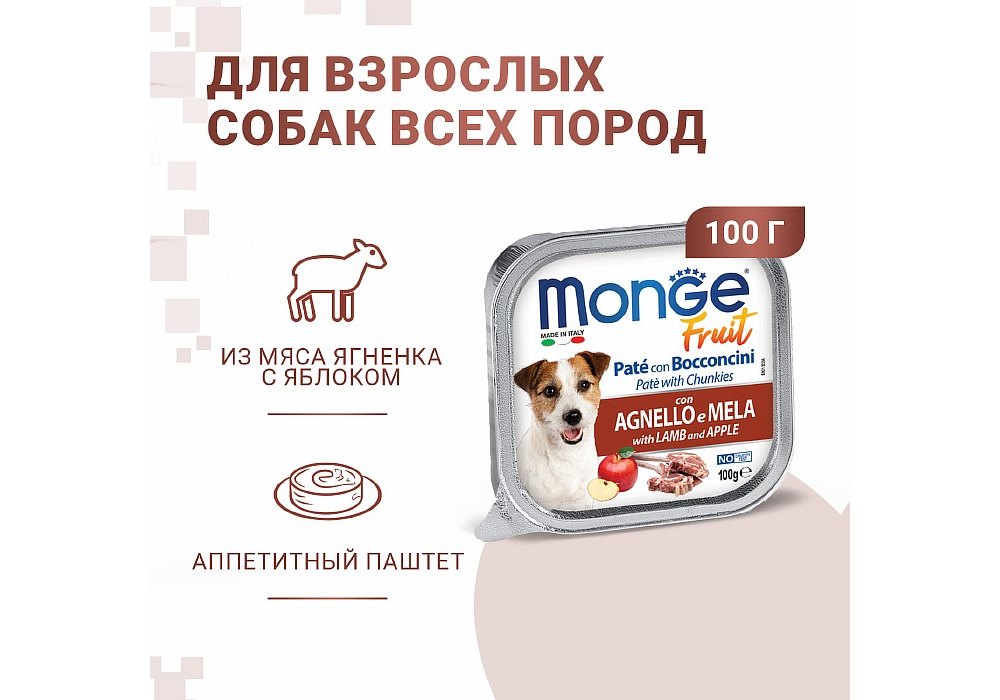 Monge Dog Fruit Lamb Влажный корм Консервы Монж Фрукт для взрослых собак Ягненок с Яблоком (цена за упаковку) 100г x 32шт