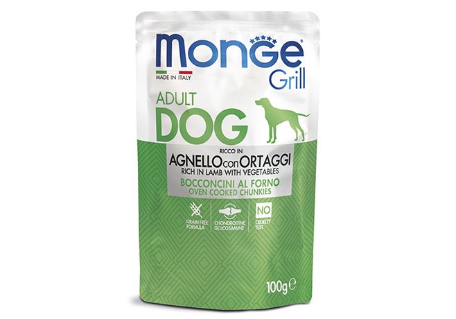 Monge Dog Grill Lamb Влажный корм Паучи Монж Гриль для взрослых собак Ягненок с Овощами (цена за упаковку) 100г x 24шт